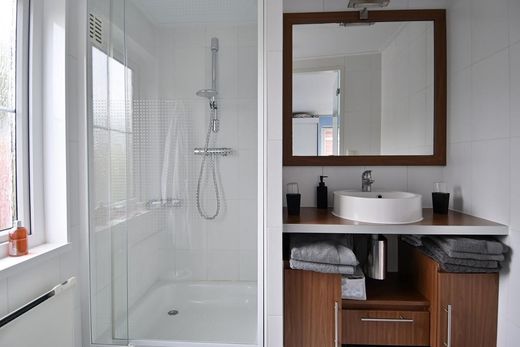 Het vrijstaande gastenverblijf heeft ook een fraai vergezicht over het water en beschikt over een lichte woonkamer met aan 2 zijden openslaande deuren naar de tuin / terras, een hoekkeuken met inbouwapparatuur, een ruime slaapkamer met vaste kast en deuren naar de tuin en een eigen badkamer voorzien van douchecabine, toilet (wandcloset) en wastafelmeubel. Dit guesthouse is voorzien van nette laminaatvloeren.